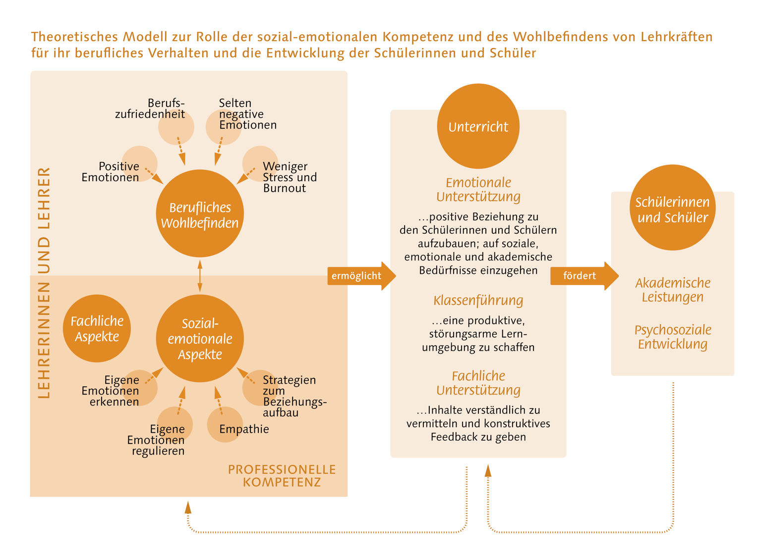 Diese und ähnliche Situationen kennen viele Lehrkräfte: Schließlich sind soziale Interaktionen mit den Schülerinnen und Schülern der zentrale Aspekt ihres Berufs. Dabei entstehen auf beiden Seiten häufig vielfältige Emotionen. Um die sozialen Interaktionen zu bewältigen, benötigen Lehrkräfte zusätzlich zu fachbezogenem auch überfachliches Wissen und Können. Das Forschungsfeld betonte bereits im Jahr 2009 in einem theoretischen Modell die Bedeutung der sozial-emotionalen Kompetenz und des beruflichen Wohlbefindens von Lehrkräften für erfolgreiche Lehr- und Lernprozesse.