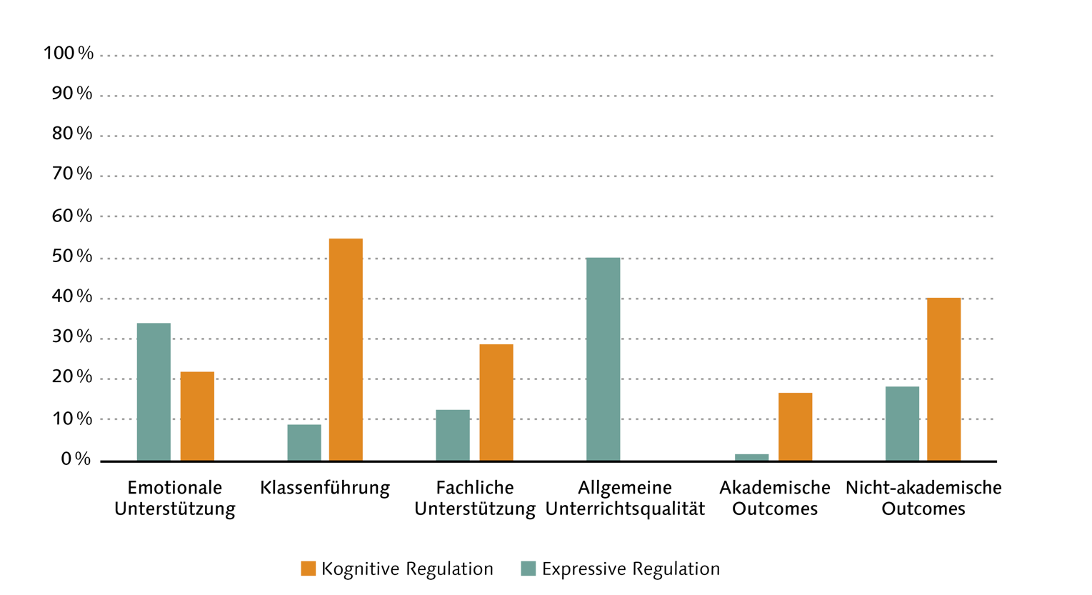 Abbildung 4: Anteil der statistisch signifikant positiven Zusammenhänge zwischen kognitiver Regulation, der Unterrichtsqualität und Schüleroutcomes sowie der statistisch signifikant negativen Zusammenhänge für expressive Regulation