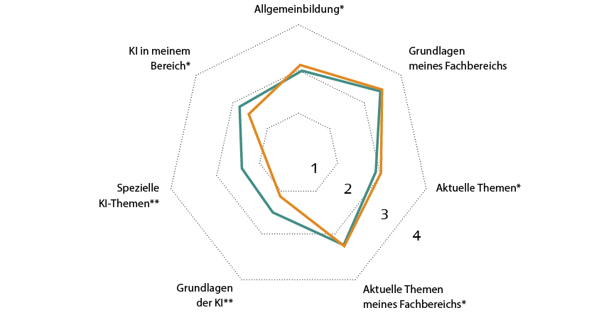 Studierende der MINT- (Mathematik, Informatik, Naturwissenschaften, Technik) sowie der sozial- und geisteswissenschaftlichen Fächer (Nicht-MINT) haben also eine ähnliche Grundmotivation, digitale Lernangebote zu nutzen. Gleichzeitig besteht ein deutlicher Bedarf an fachspezifischen Kursen. Beide Gruppen bevorzugen vor allem Grundlagenwissen und aktuelle Themen, die einen direkten Bezug zur eigenen Fachrichtung aufweisen.