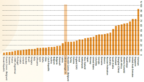 Deutschland hat an dieser Studie nicht teilgenommen. Allerdings konnten in einer im Jahr 2010 durchgeführten Befragung unter Lehrkräftenin Deutschland nur deutlich weniger als ein Viertel der befragten Lehrkräfte zustimmen, dass sie ein hohes Ansehen genießen.