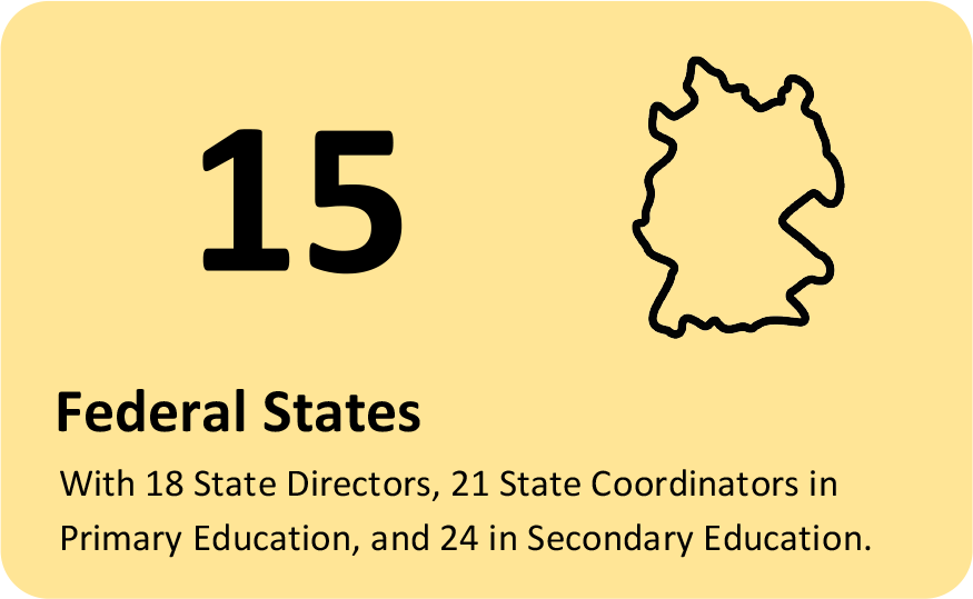 The QuaMath program will gradually expand to achieve its target of 10,000 schools by 2033. New school networks will be established in successive cohorts. Qualified multipliers accompany the teachers and conduct the training courses in the federal states. The federal states are responsible for selecting and supporting the schools. They have appointed state coordinators and state managers to oversee the program’s implementation on a regional level. QuaMath will therefore grow in a controlled and sustainable manner, one school at a time.